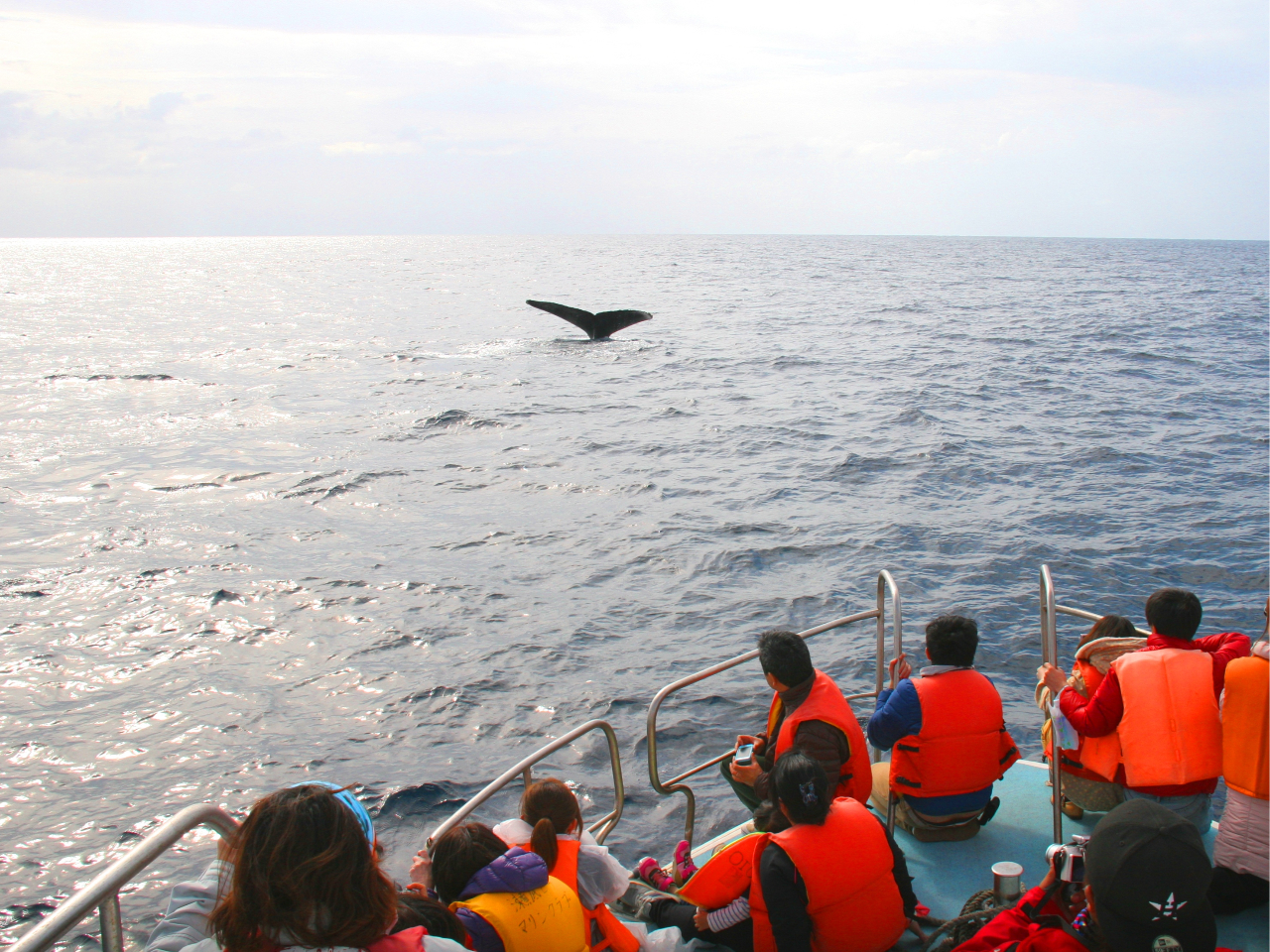 ホエールウォッチングの穴場、本部町伊江島沖合いにてクジラに遭遇しよう♪