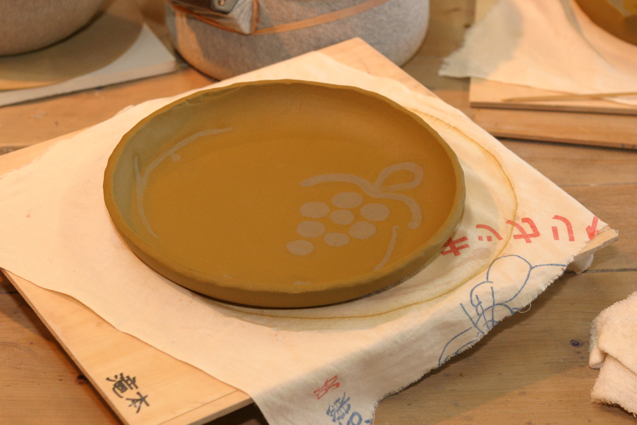 体験担当の奥さんののり子さんが優しく丁寧に指導してくれるから初心者でもOK。体験メニューはコンセプト通りの食卓で使える実用的なカレー皿づくりを行います。色の違う粘土でオリジナルの模様・デザインを考えるのが楽しいですよ。