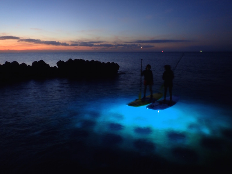 サンセット&ナイトSUPとは、SUPボードに専用のLEDライトを取り付けて夜の海を楽しむアクティビティです。