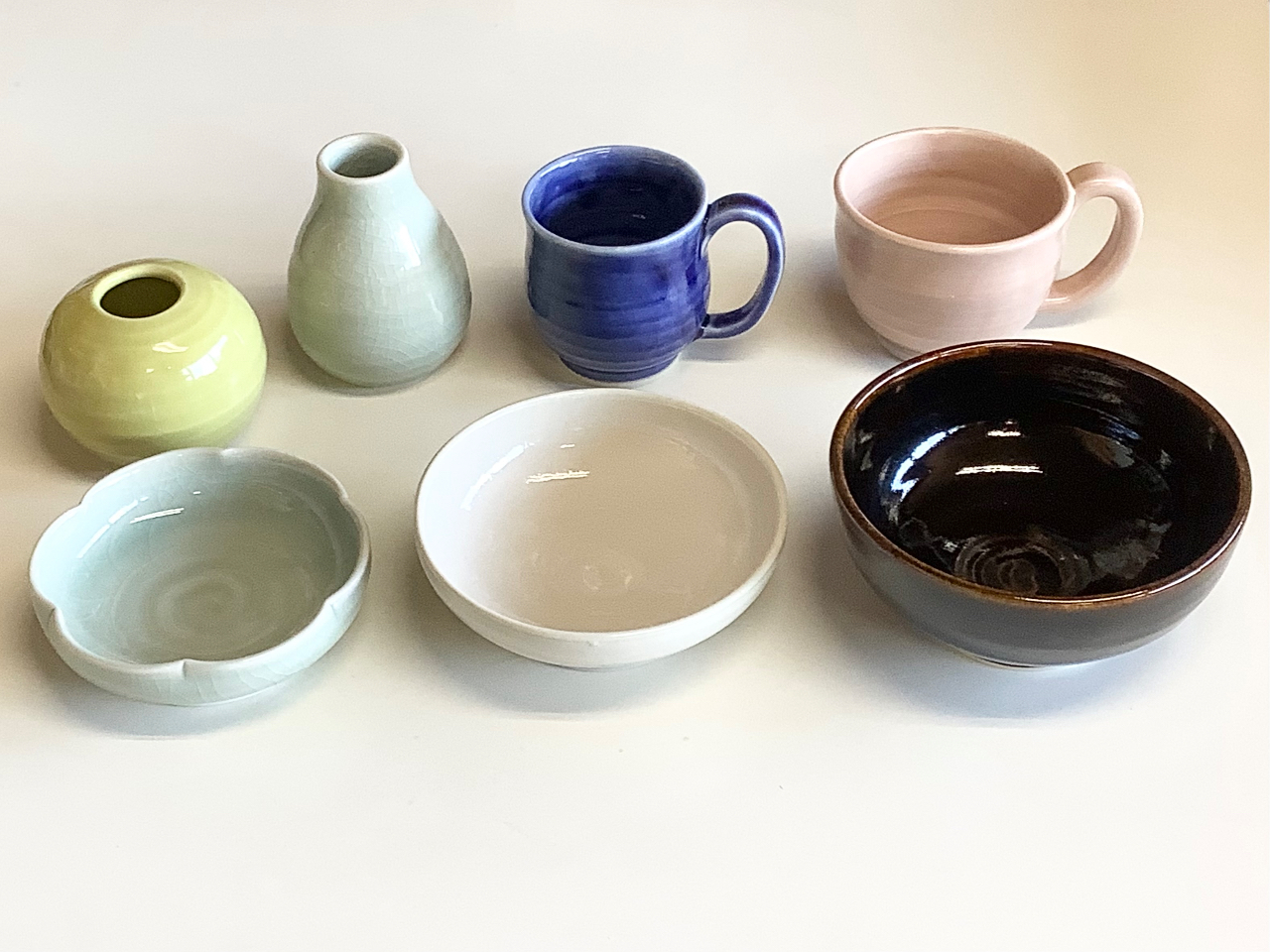 湯呑やご飯茶碗、小鉢等をお作り頂くことができます。オプションでマグカップ、花瓶、どんぶり、大皿なども作れます。名前などの文字を入れることもできますよ♪
