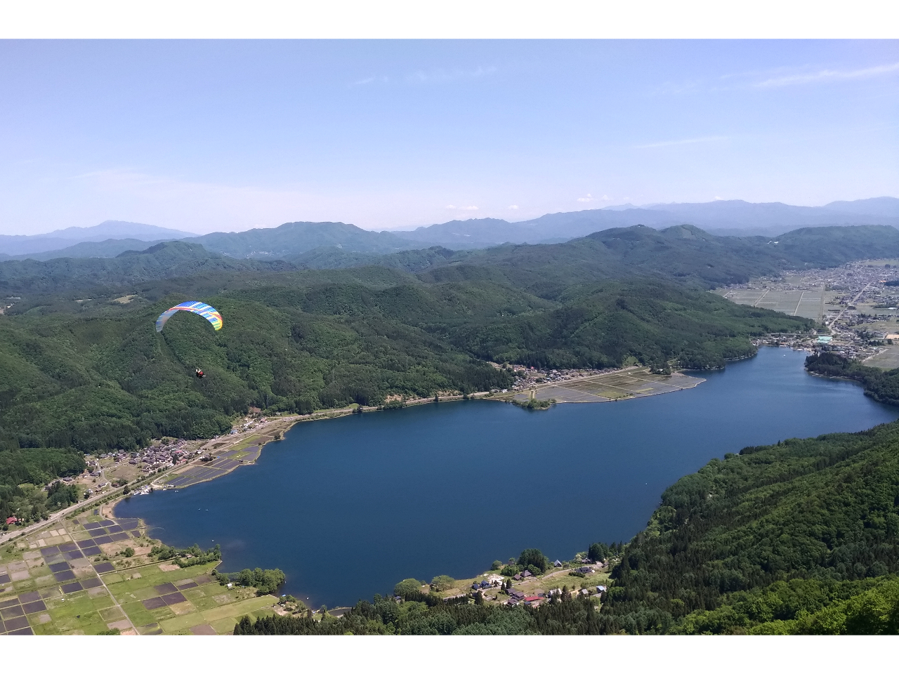 仁科三湖の1つ木崎湖を眺めながらベテランインストラクターと飛ぶ、大迫力のパラグライダー体験