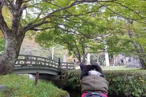 フロント側のドッグランへもと思っていたものの、道の駅を左折したと同時にテンションマックスになる愛犬、一度落ち着かせてと、テニスコートをぐるっとさせました。伐採も済み、スッキリとしたせせらぎ公園に足を延ばし、小池の周りを1周。石を渡って1周する際「ジャンプ」の声もむなしく、愛犬はドボンと小池にはまってしまいました。足が汚れて不快だった様子、車に乗せてもシュンと。予定変更で即帰宅となりました。皆様も、お散歩の際は十分にお気を付けください。