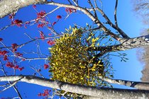 ナナカマドと共存共栄のヤドリギも、すくすくと育っています。枯れることなく過ごす冬、不思議ですよね。多くの木々が葉を落とすこの時期に、夏と同じ状態+透き通る緑の実を付けて、誰かを待っています。ついばんでくれる鳥なのでしょうか?