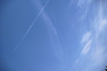 昨日撮影した空に、うっすらではありますが、今日の天候を予見する飛行機雲が消えずに長い間残っていました。