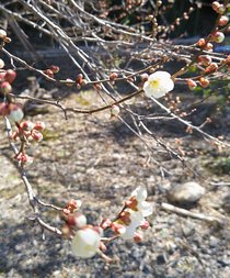 人が訪れないような渓谷にも梅の木があり、香り高く花が一輪咲いている。