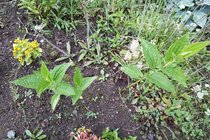 今日7月1日の誕生日の花は「半夏生」です。今回の写真がミニミニ花壇に咲く半夏生ですが、一向に花が咲かず、葉が白くなりません。花が咲いている期間に葉の半分が白に、花が終わると葉っぱは緑色に戻るものです。土のせいか、場所のせいか、変身できぬままの半夏生です。植えた2本とは別に、今年は5本に増えていました。来年こそ変身した姿を間近で見たいです。