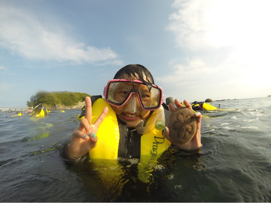 泳げない方も大丈夫 水面に浮いて水中を覗いて見るだけです
