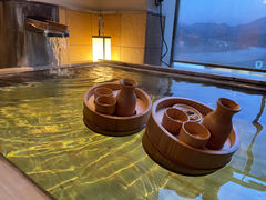 貸切温泉ではオプションで日本酒とおつまみをのせた湯桶を追加でき、露天風呂につかりながら日本酒を堪能。これぞ至福なのかもしれません。写真映えさせたい方にもバッチリです。