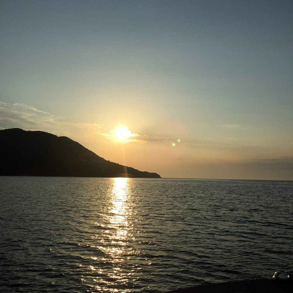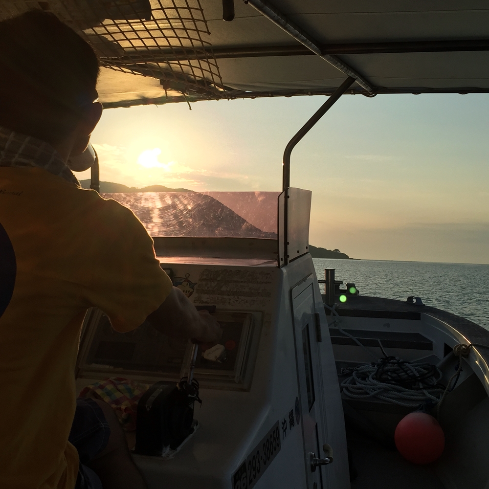船に乗って夕日を見にいこう!!東シナ海に沈んでいく大きな太陽を誰もいない海の上からゆっくりと鑑賞できます。カップル・ご家族にオススメ!!とびきりの時間を過ごしてみませんか??