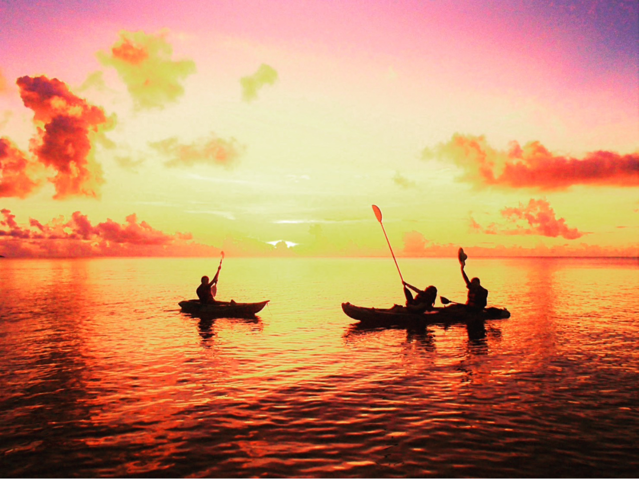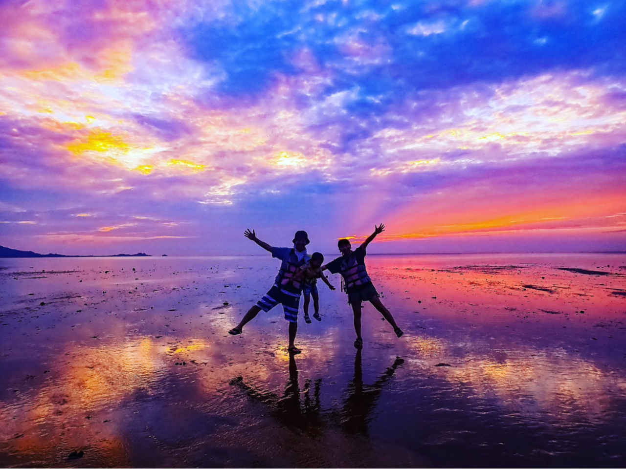 目線の高さで水平線に沈んでいく夕陽。刻々変わる空の色。さらにマングローブ林内も楽しめて星空まで。