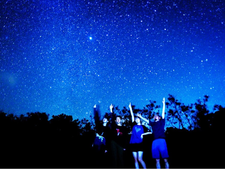 満天の星のもと、レーザー光線による星空解説はプラネタリウムよりわかりやすいと大好評。
