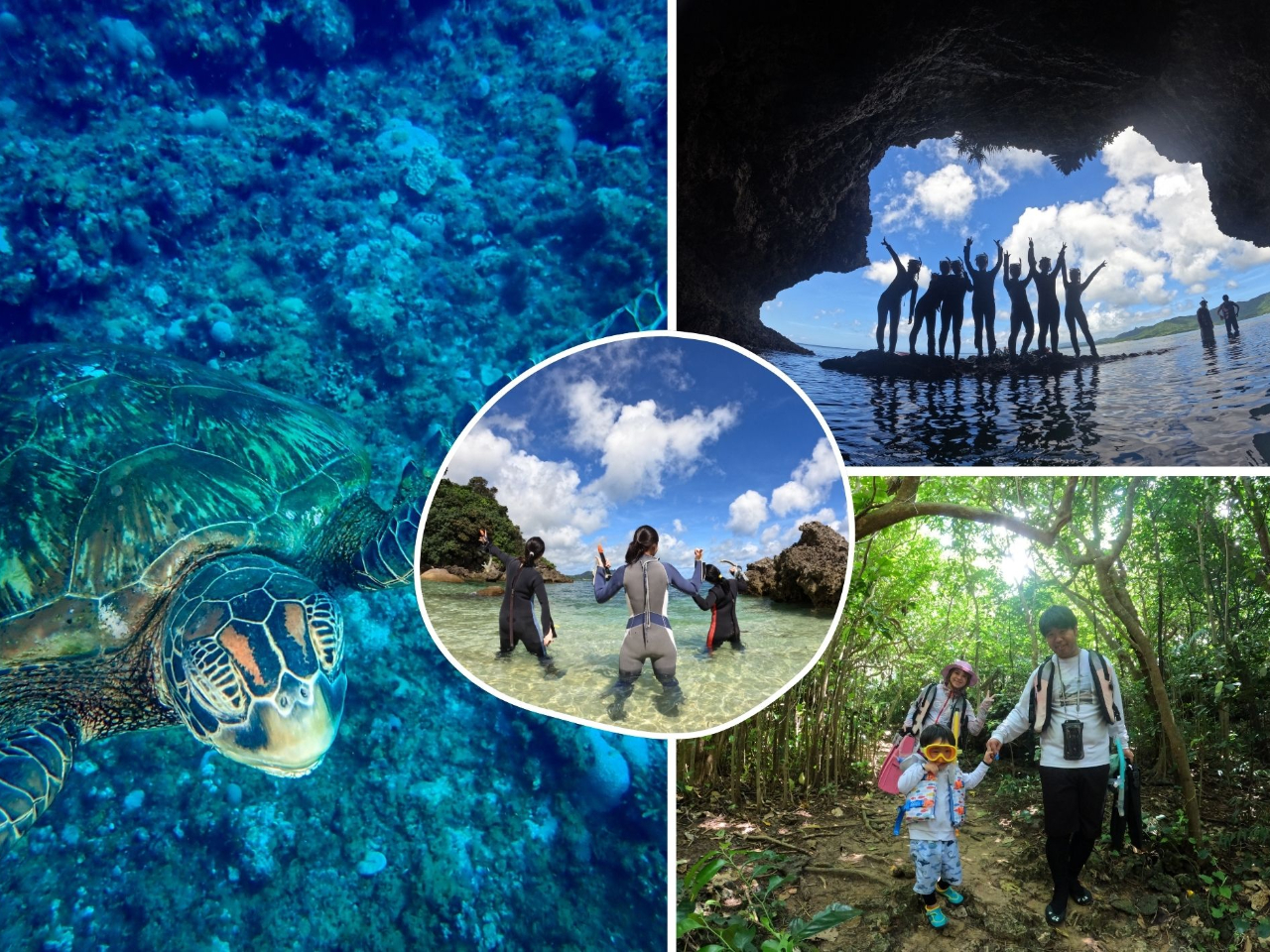【青の洞窟シュノーケル】☆レンタカーでお得プラン☆安心の少人数制&ビーチエントリーで小さなお子様・初心者大歓迎!ウミガメにも会えるかも?
