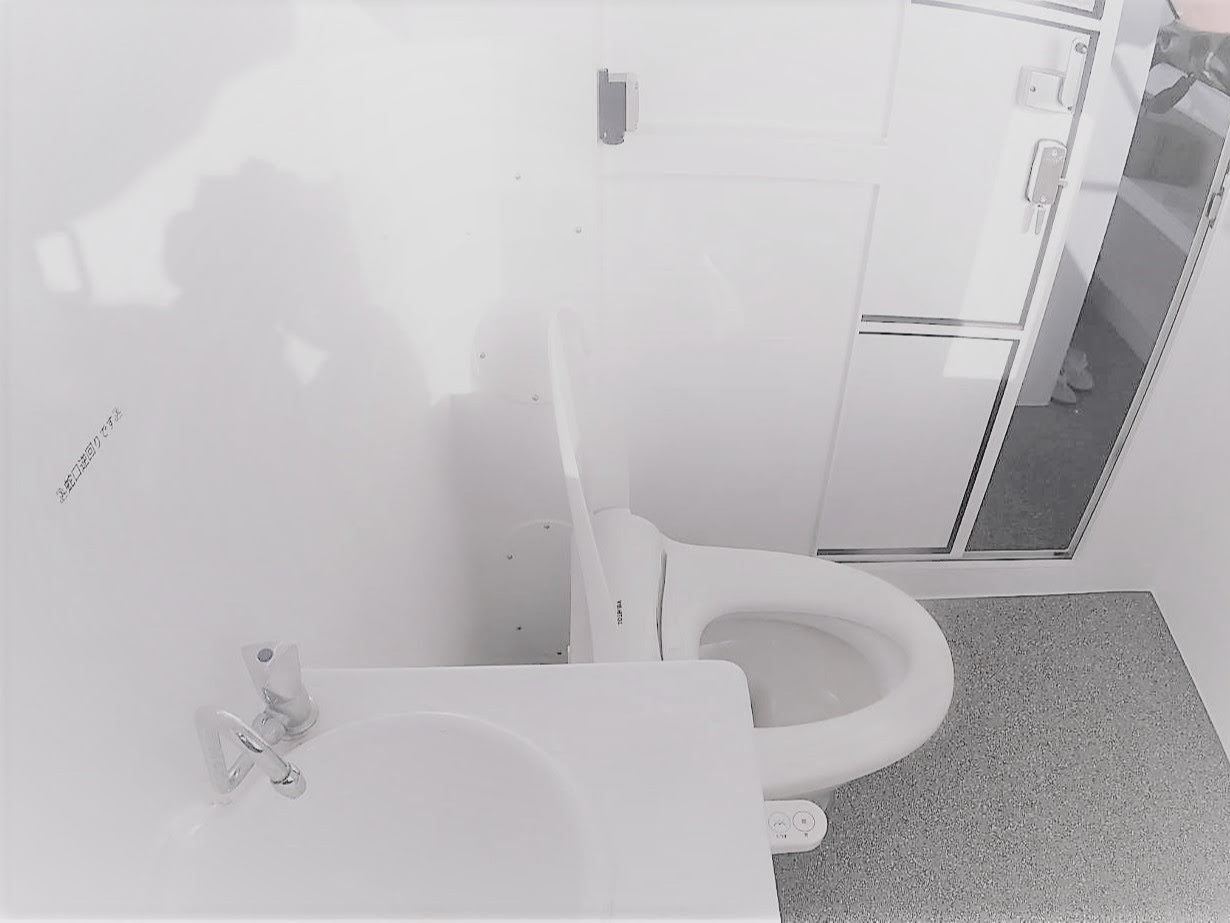 広くて清潔な水洗トイレ。中に手洗い場所もついているので、女性にも安心。