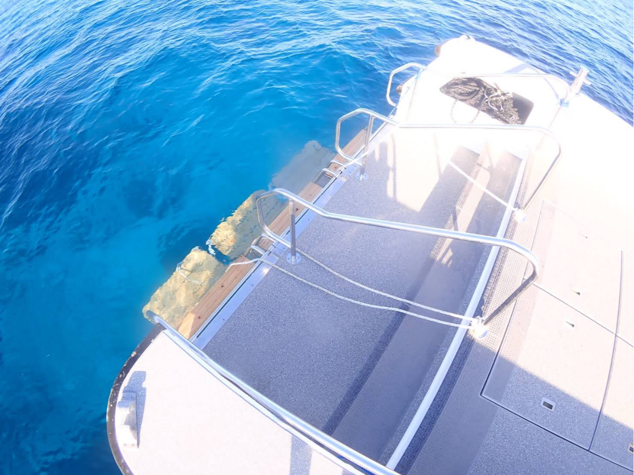 船の後ろには、広いラダーが3箇所。体力に自信がない人も楽にエントリーやエグジットが出来る。