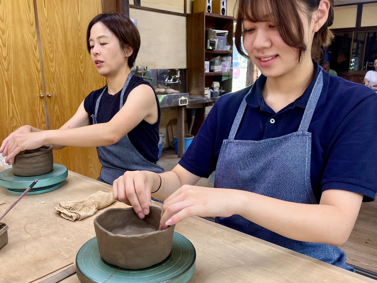手ろくろを自分でクルクルと回しながら自由な形を作ります!