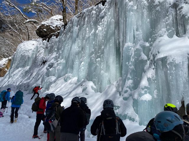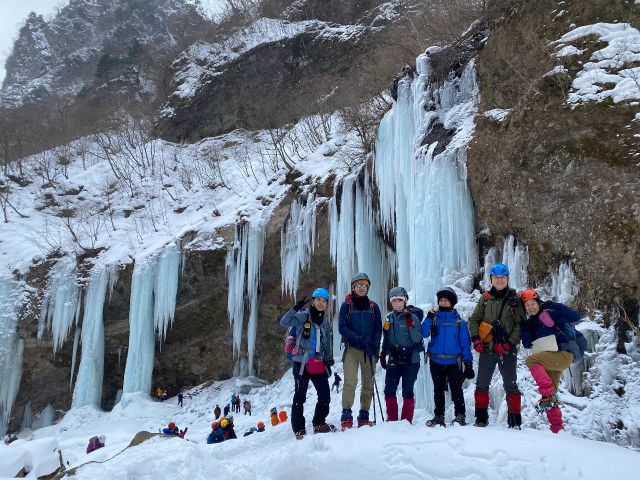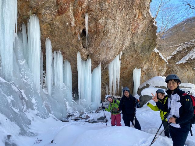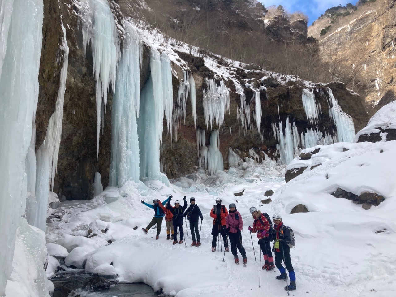 アイゼンを使用し、凍った沢を歩き氷瀑・氷の神殿を地元のガイドがご案内します。