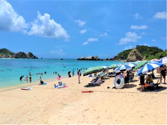 ケラマブルーのグラデーションが広がる「阿波連ビーチ」で海水浴!!