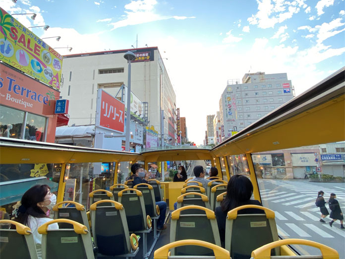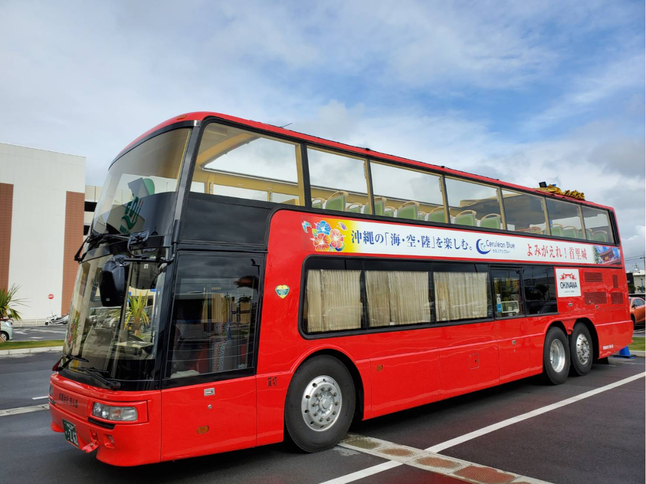 2階建て屋根のないオープントップバスで行く♪沖縄を代表する大人気スポットから選べる3便「首里城・アメリカンビレッジ・ウミカジテラスコース」♪