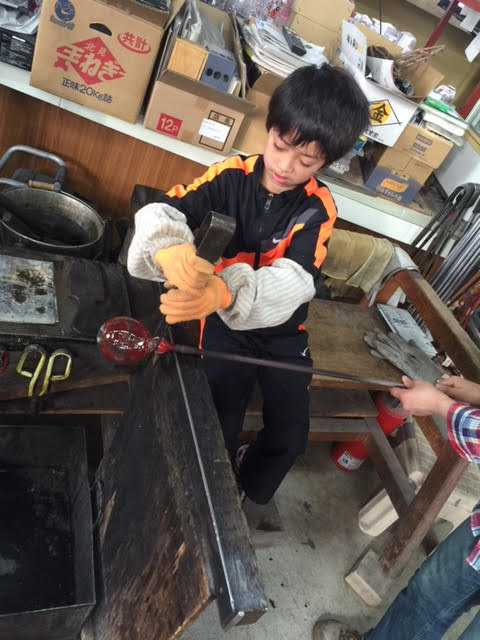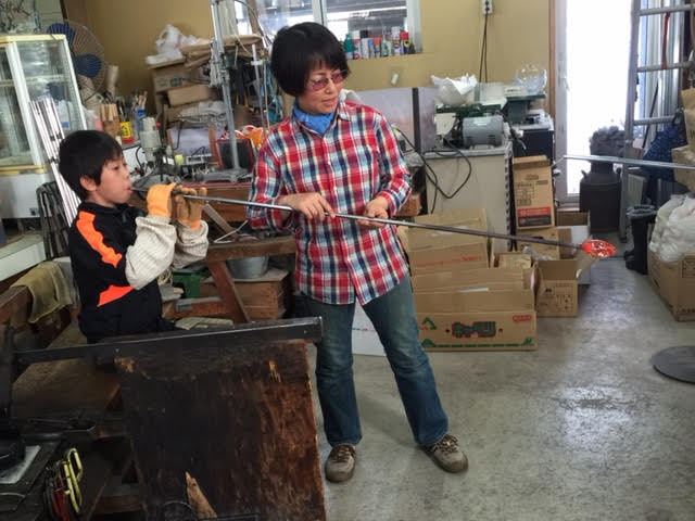 子どもたちの夏休みの自由研究のための「グラス作り」でしたが、優しく手伝ってくれました。