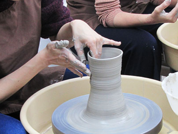 電動ロクロと手びねりのどちらかお好きなコースをお選び頂けます。