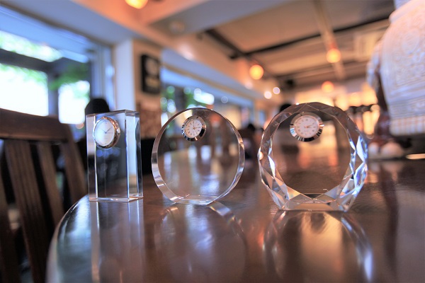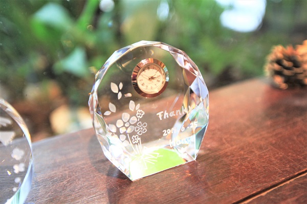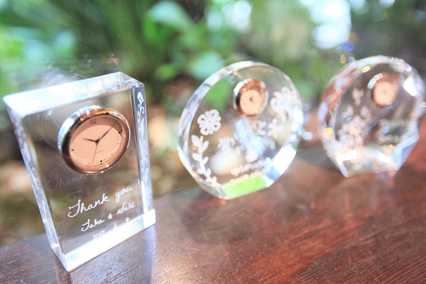 ガラス時計の形はキューブ・サークルスタンド・ダイヤカットアーチの3種類からお選び頂けます。