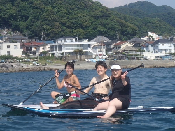 海上クルージングをお楽しみいただき記念撮影をいたします。サップ・SUP(スタンドアップパドル)