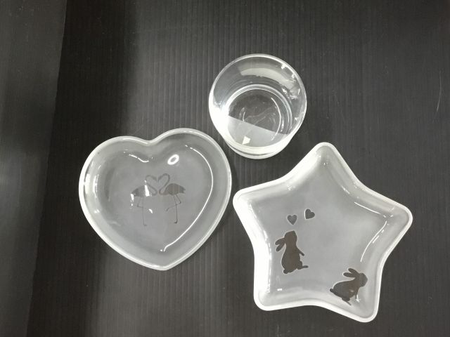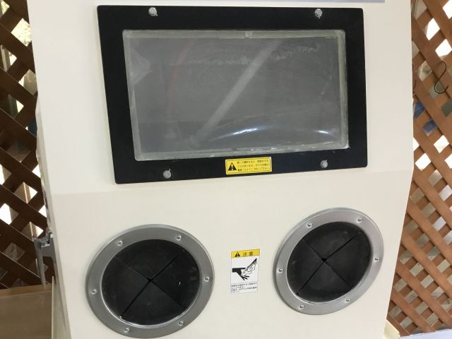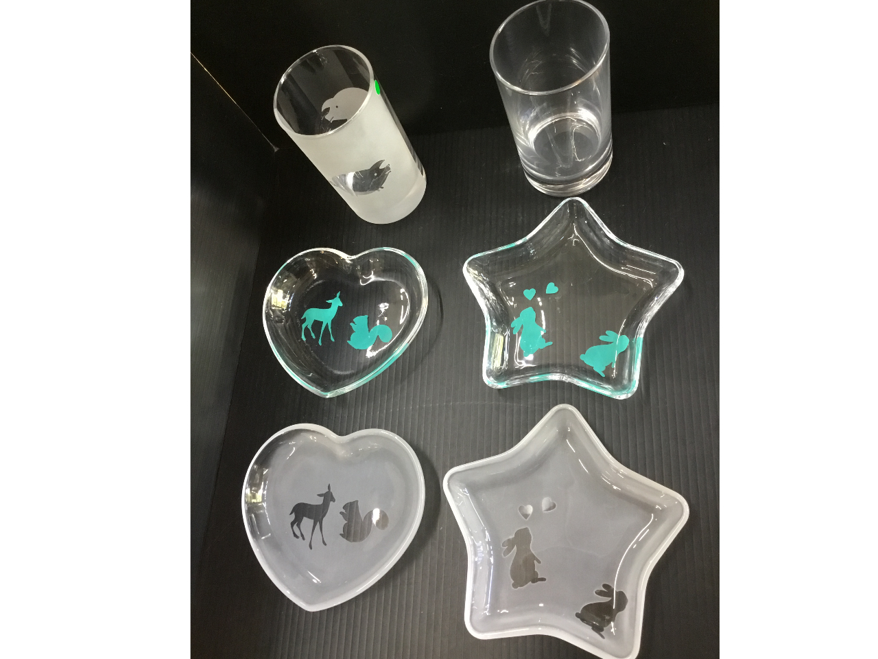 砂を吹きつけて曇りガラスにして模様をつける体験です♪