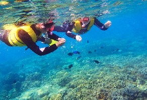 ・アラハビーチ沖「サンゴの森」または「カラフルなお魚」観察ポイントへ