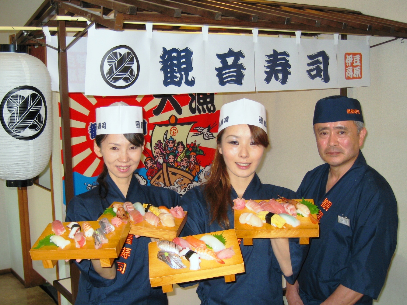 お友達と一緒に、伊豆旅行の記念ににぎり寿司体験はいかがでしょうか。