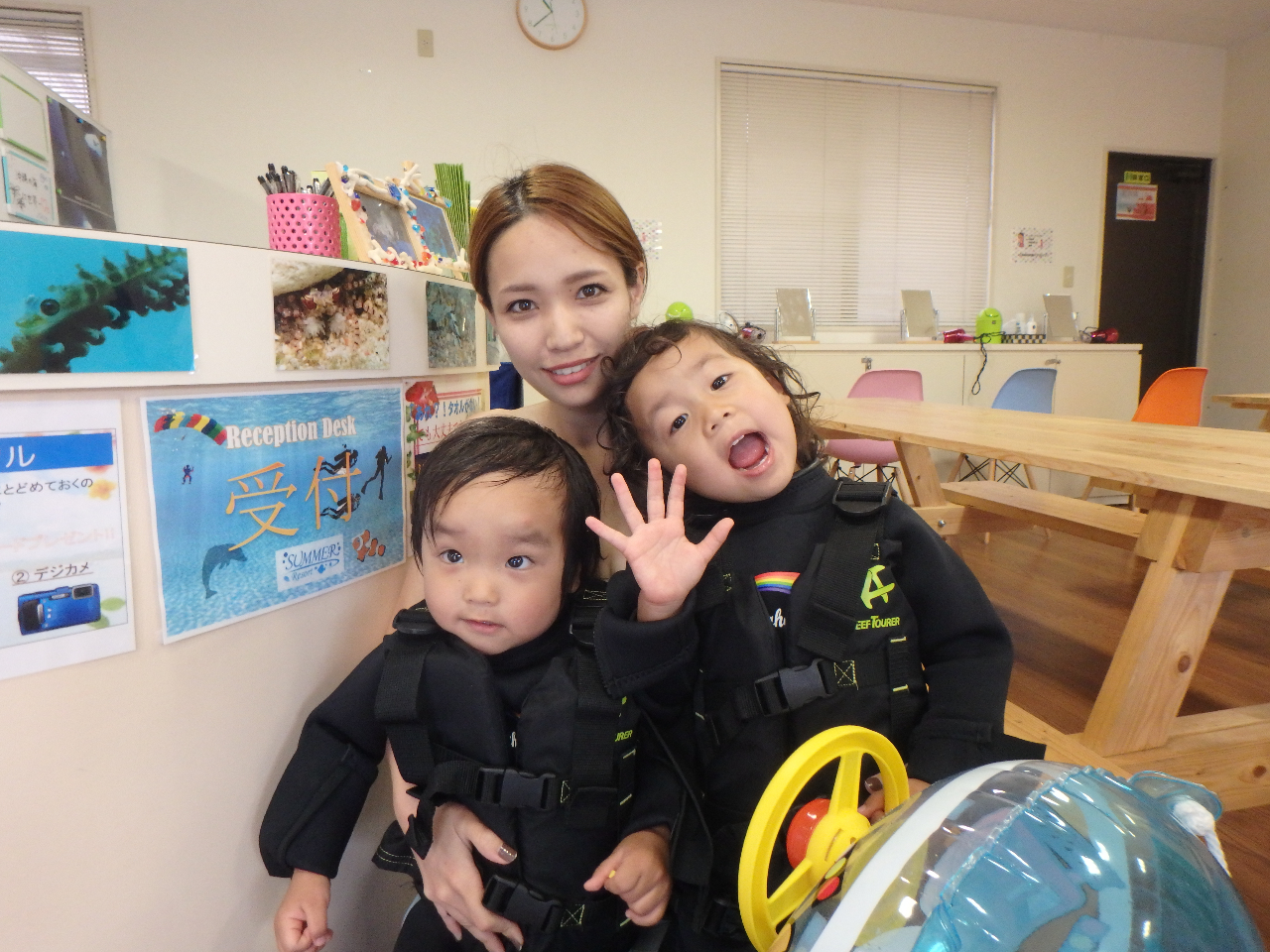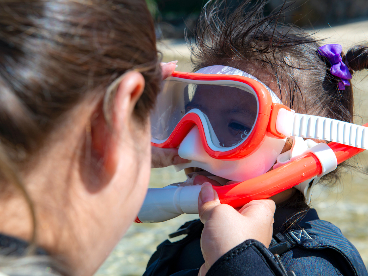 水が苦手な小さなお子様は、水中マスクをつけずに
