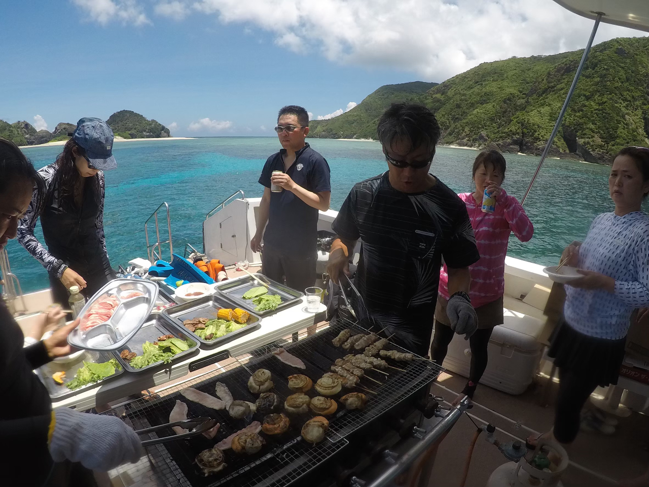 那覇から20分、北谷から45分で行ける素晴らしいロケーションの無人島エリアで船上BBQ♪