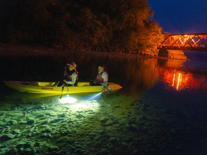 静けさが増す夜の支笏湖・千歳川を大冒険!!昼間とは違うアドベンチャー体験!寝てる魚達を見ながら、野生動物観察もできます。