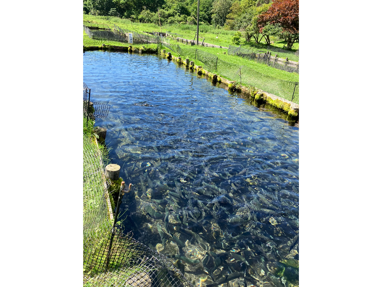 山本養鱒場のニジマスは、倶多楽湖の伏流水で育てられています。
