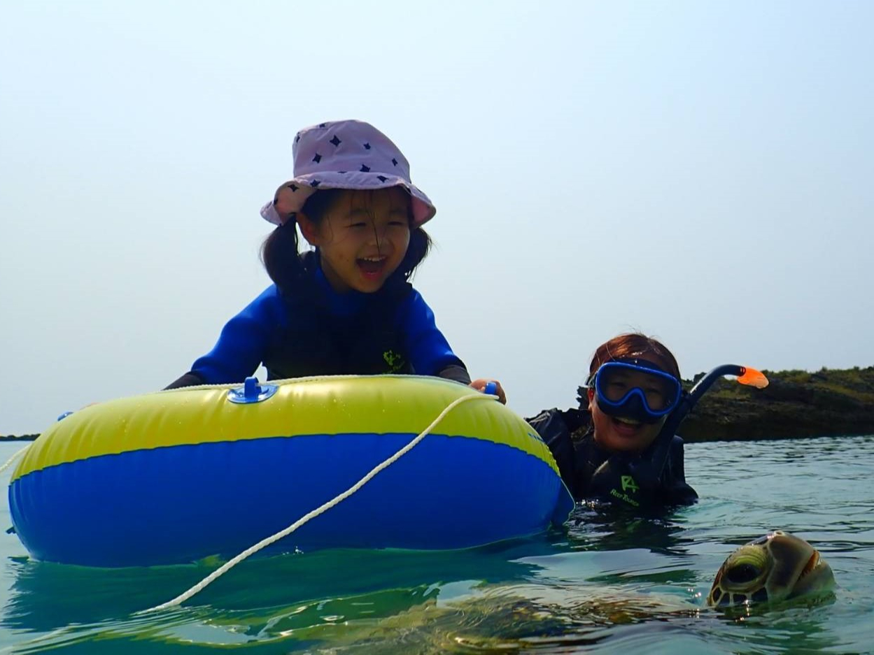 透明度の高い宮古島の海で海亀と至近距離シュノーケルや、小さなお子様連れでも安心のシュノーケルツアー♪