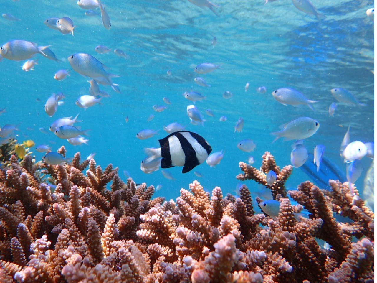 :サンゴ礁・魚POINTで詳しい説明を海の中で聞きながら、のびりシュノーケル♪