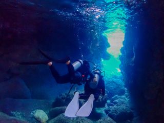 シュノーケリングも神秘的な青の洞窟&隠れサンゴポイントのビジャスで、2ポイント!!スキューバダイビング