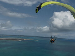 自分の番が来るとスルスルッと装備つけられてあっという間に空に連れてってくれます。天気がよかったおかげもあり海も空もとてもキレイ。空からいろんな写真撮る余裕があります。
