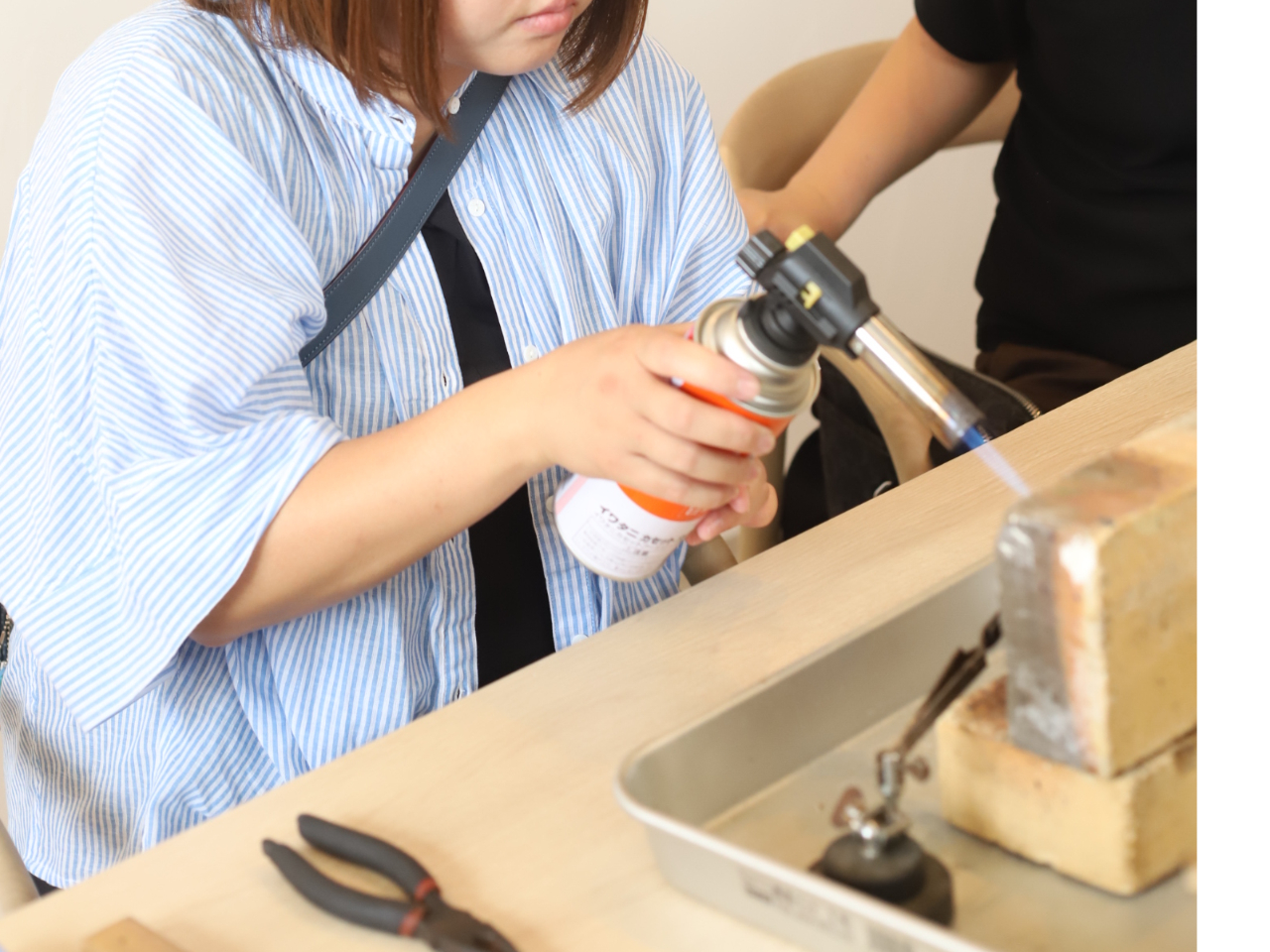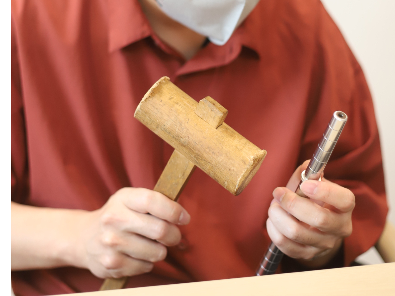 ここからが楽しい時間です。トントンカンカンしながら金属を加工していきます。