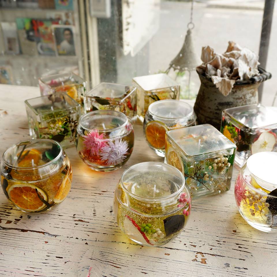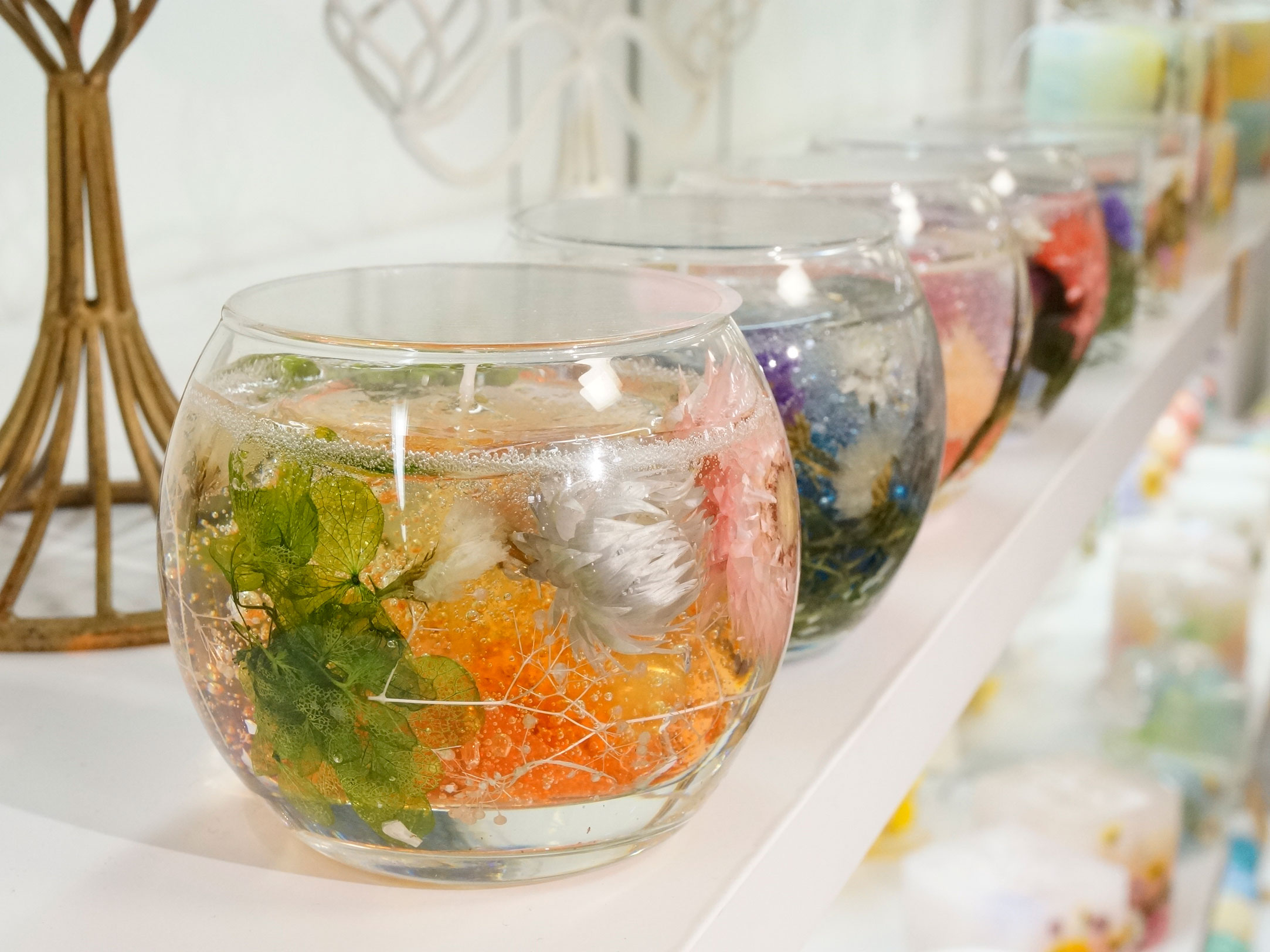 自分好みのアロマオイルとボタニカルでオリジナルのぷるぷるジェルキャンドルを作りましょう♪