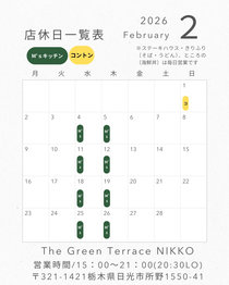 The Green Terrace Nikko ・2月休業日のお知らせ