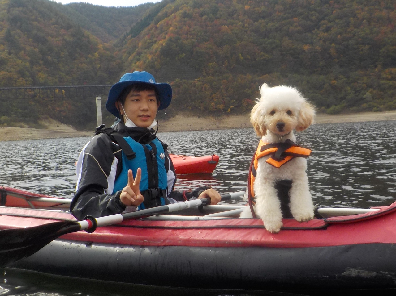 【福島市・飯坂温泉・摺上川ダム】ワンちゃんとカヤック(カヌー)ツアー 所要時間約120分 飼い主様1名+愛犬1匹 11,000円【各回1組様】