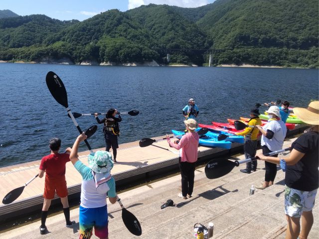 広々としたダム湖は、遊泳や動力船が禁止のため、安心してカヤックやカヌー等のパドルスポーツを満喫できます。