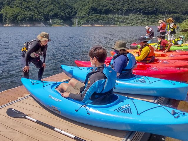 【初心者歓迎】東北自動車道 福島飯坂ICより約30分の良アクセス!水源保護エリアの美しい自然を活かしたダム湖は遊泳&動力船禁止の安心・安全空間!広大なダム湖でカヤックを楽しもう!【2名様より催行】