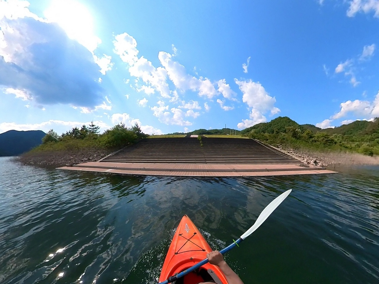 全長5km以上の広大なダム湖をのんびり水上ツーリング。
