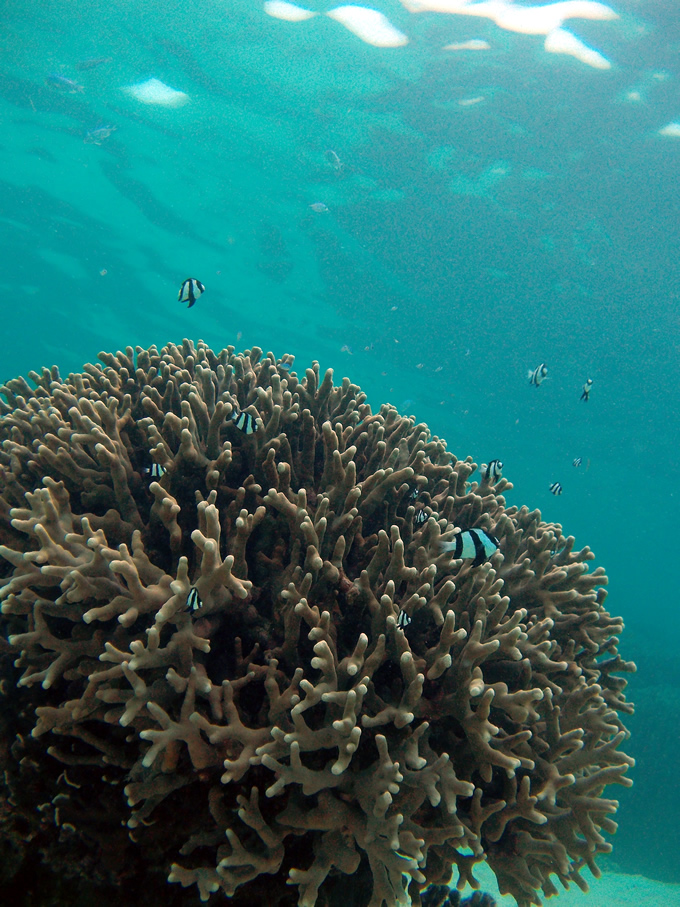 ユビエダハマサンゴの塊 小さな熱帯魚が集まります