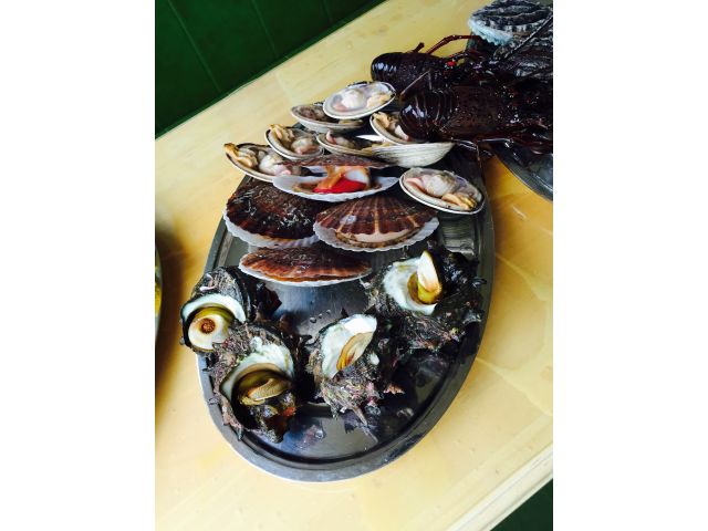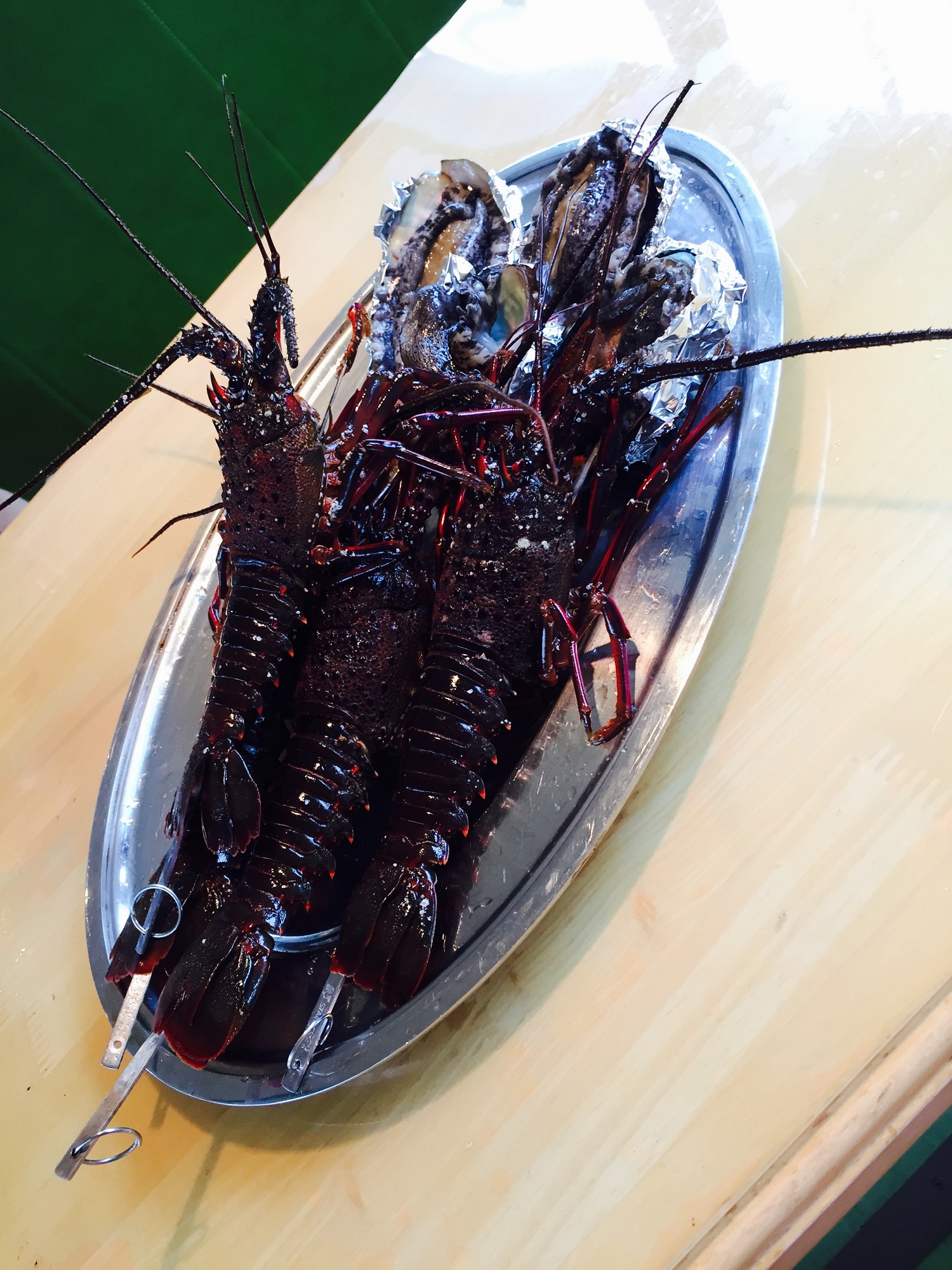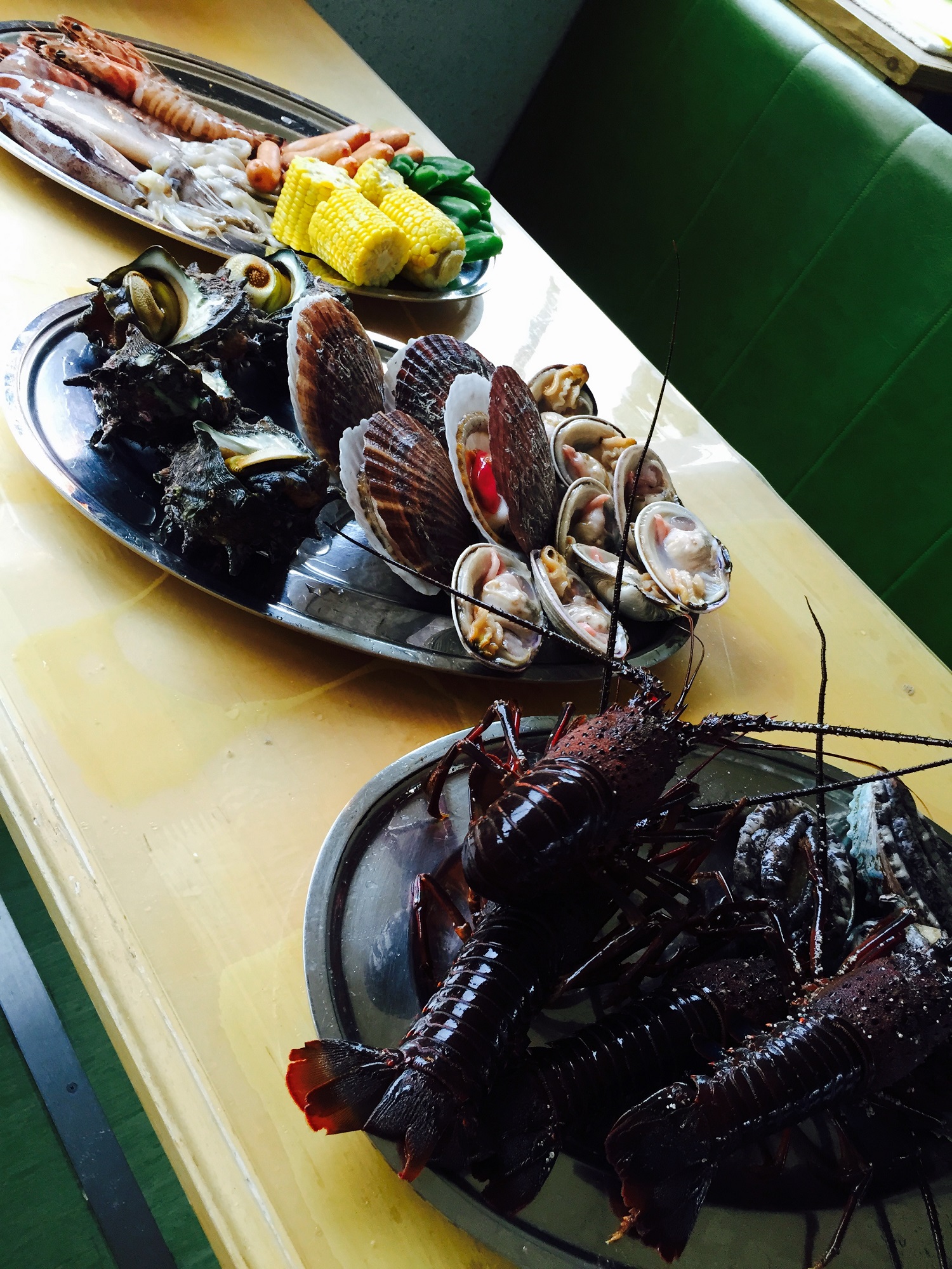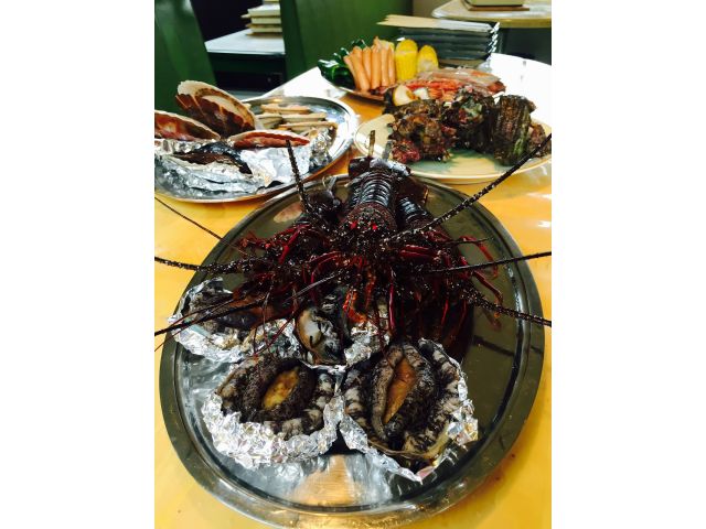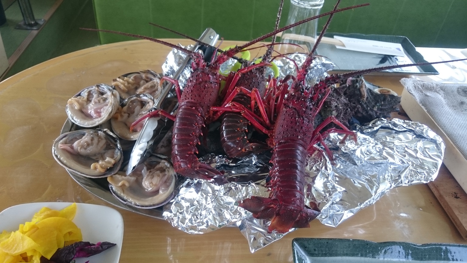 アワビ1個/伊勢エビ1個/車エビ 1匹/イカ 1匹/バタ貝 1個/ウインナー 2本/ひもの 1枚/野菜/御飯/赤だし/漬け物