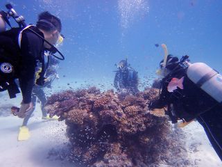 真っ白でさらさらの砂地の海底砂漠、カラフルなサンゴが一面に広がるお花畑!想像を超える景観の広がる海へ。スキューバダイビング
