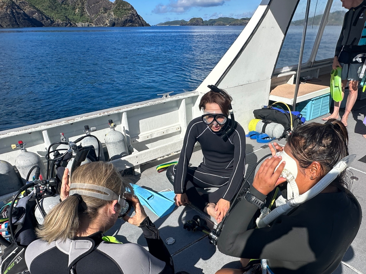 たっぷり体験ダイビングを楽しんだあとは、ボートでのんびりランチタイムを楽しみ、