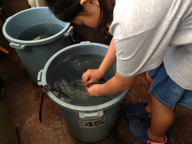 3、くくり作業、くくり方はいくつかあるので模様のデザインやお子様でも簡単にできるくくりなどを