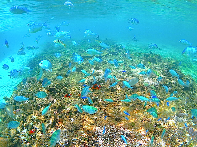 宮古島はビーチポイントでもサンゴやお魚がいっぱい。